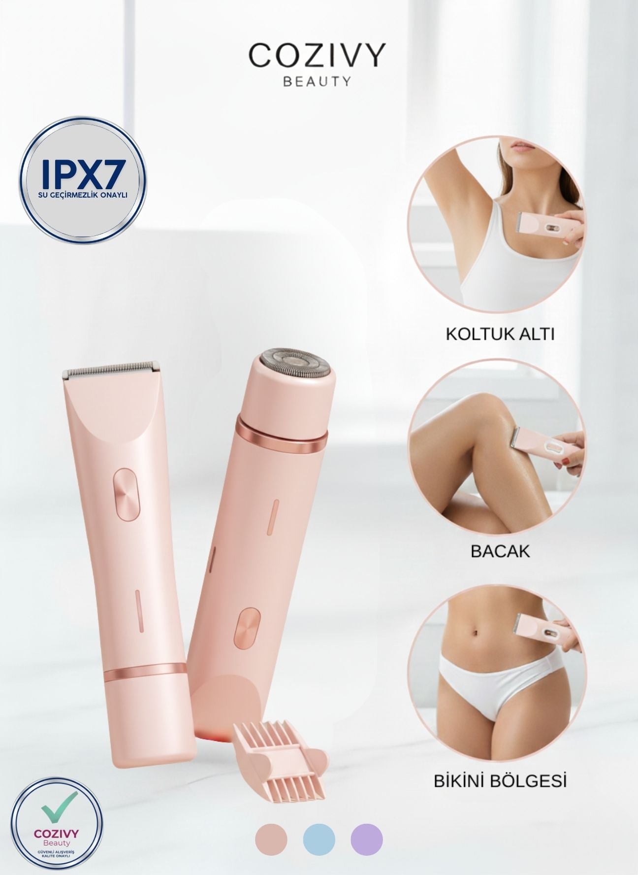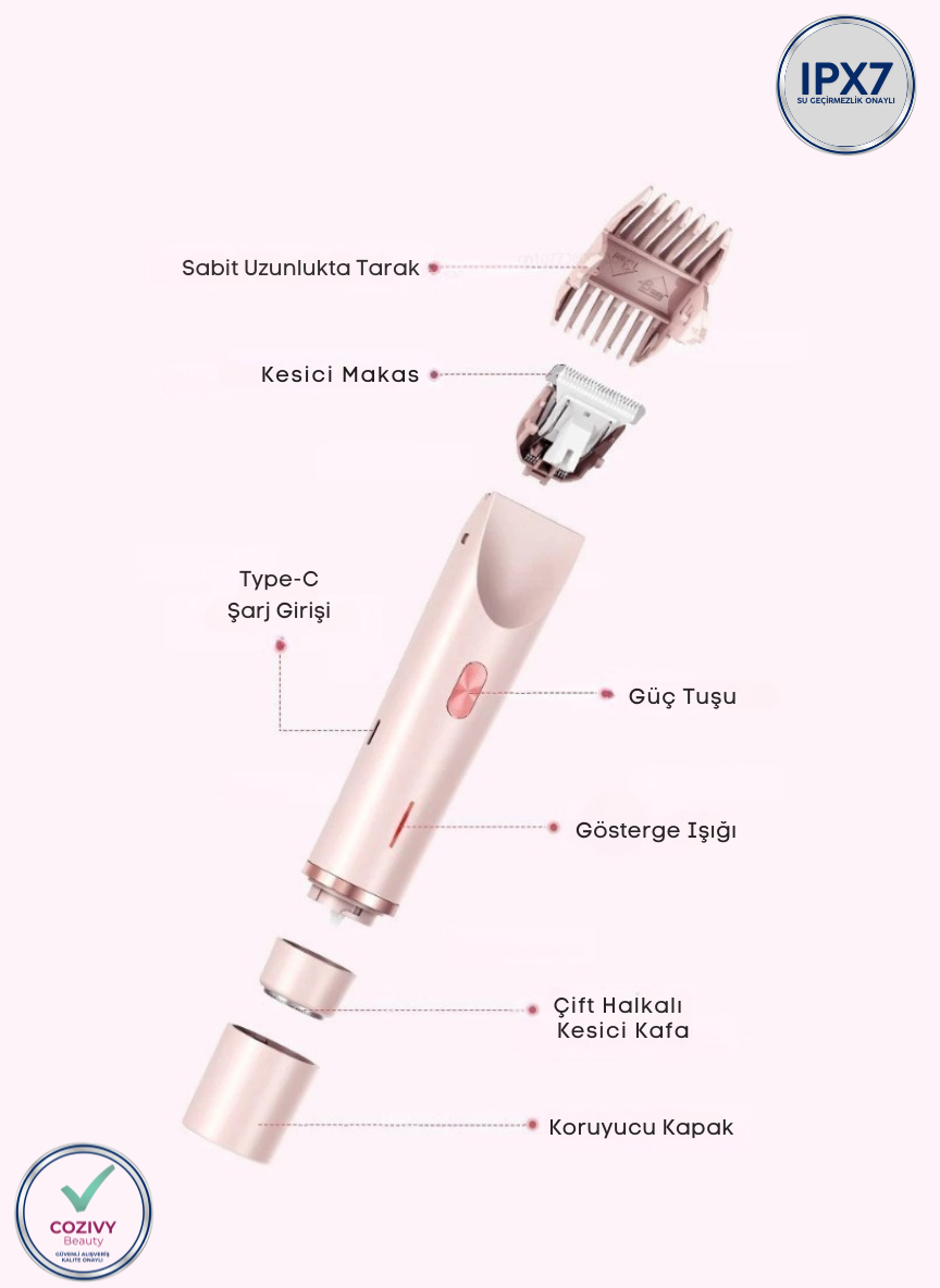 Evet. Cozivy Tıraş Makinesi, yüz, bacak, koltuk altı ve bikini bölgesi dahil tüm vücut bölgelerinde güvenle kullanılabilir. Cilt dostu bıçak yapısı sayesinde her bölgede pürüzsüz ve acısız bir tıraş deneyimi sunar.